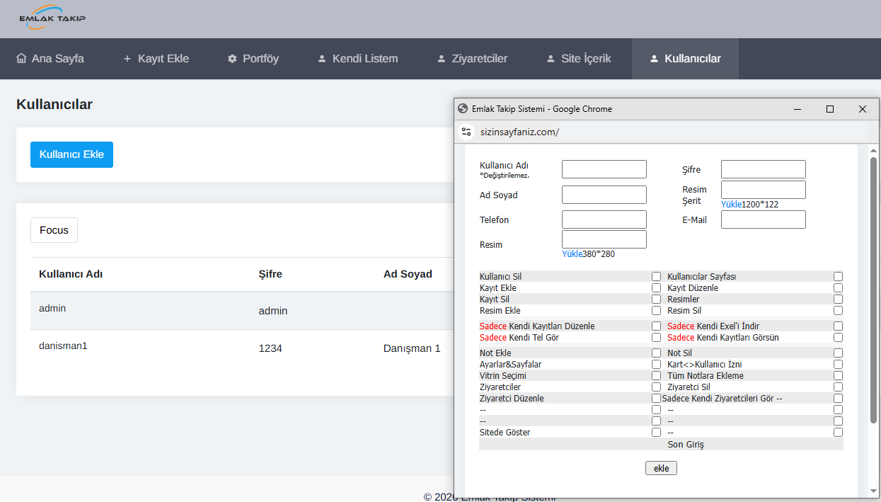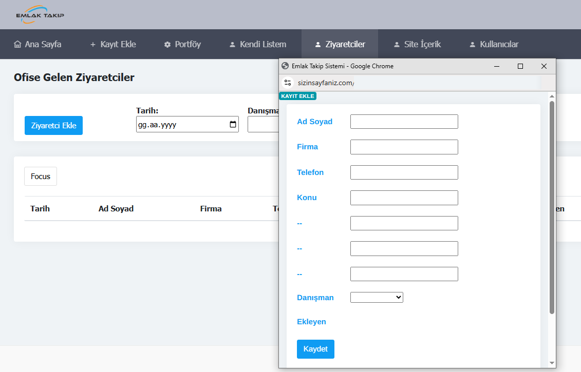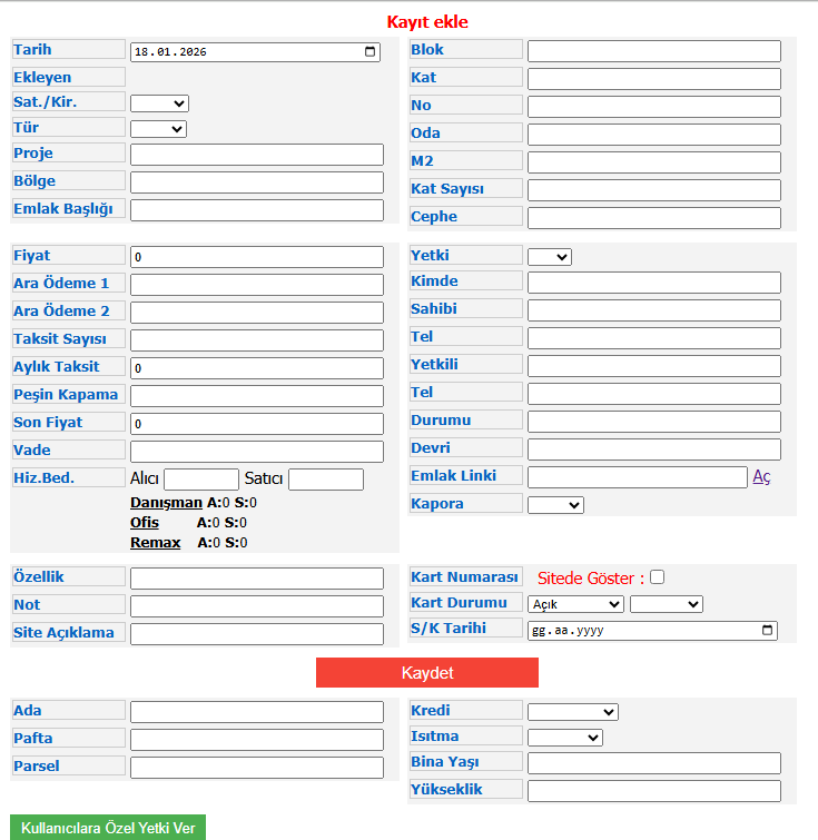 Emlak takip programımız danışman bazlı yetkilendirme sistemi sayesinde remax gibi emlak ofisleri içinde çok uygundur. Sistemin içinde yer alan ofis ziyatercileri bölümü