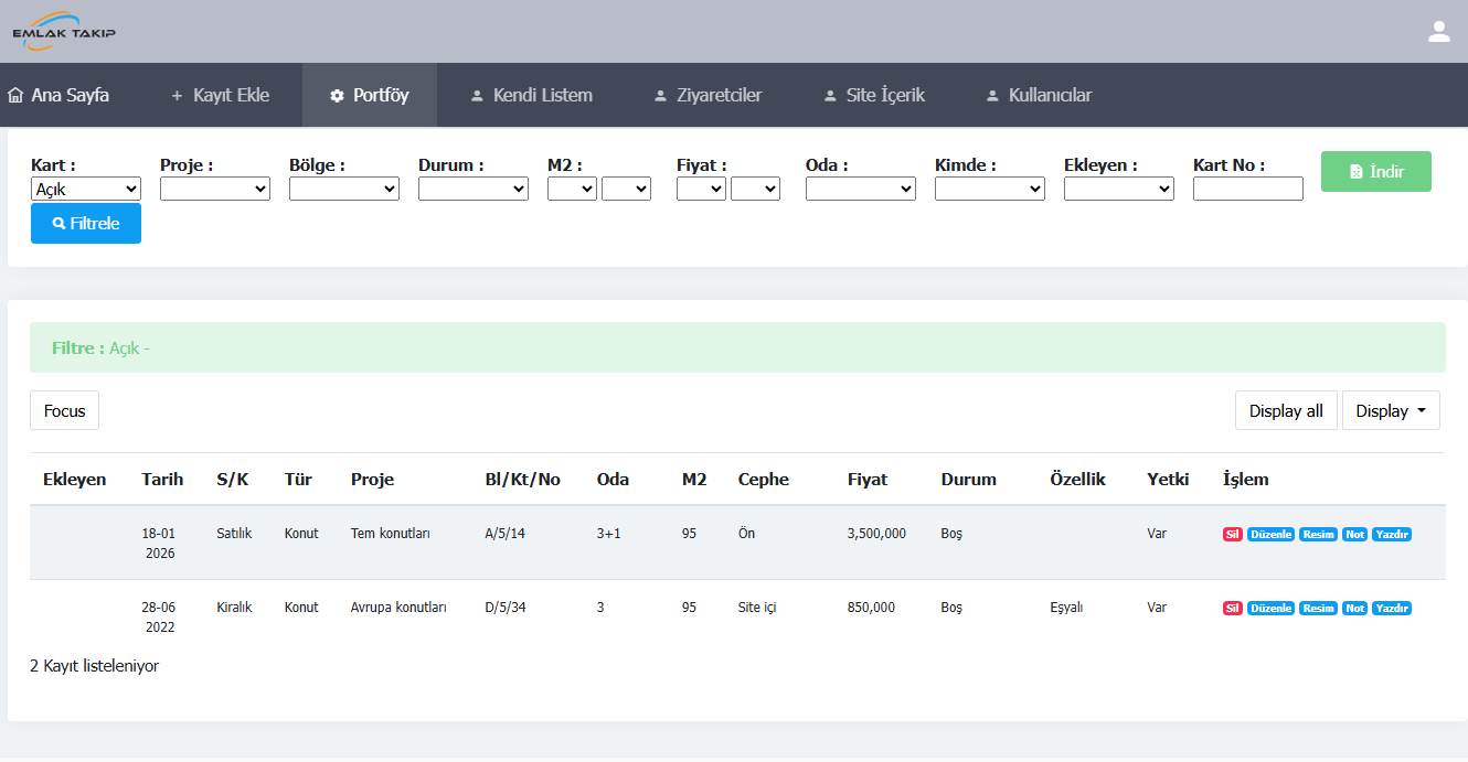 sayesinde emlak arayanlar ile emlakları tek ekranda birleştirerek geriye dönük sorgularla satıcı ve alıcıları buluşturmanız daha kolay olucak.