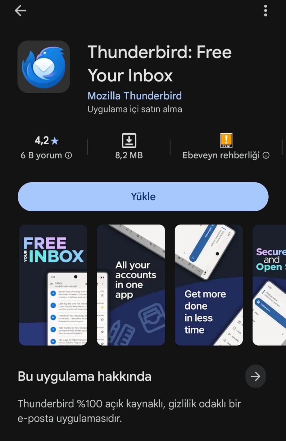 1- Google Play'den Thunderbird uygulamasını indiriniz.