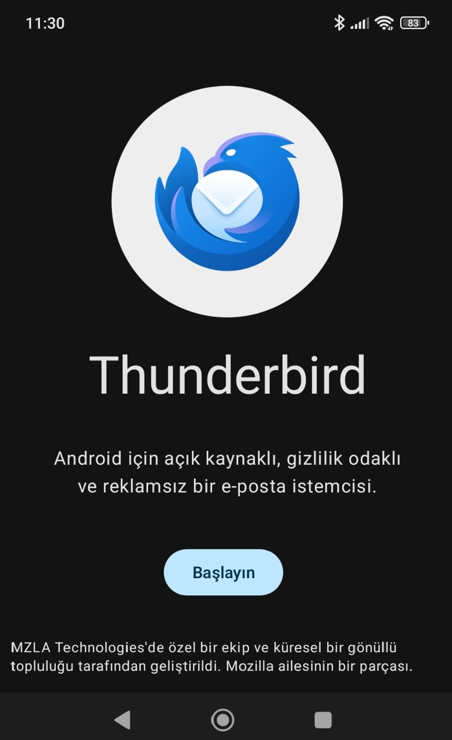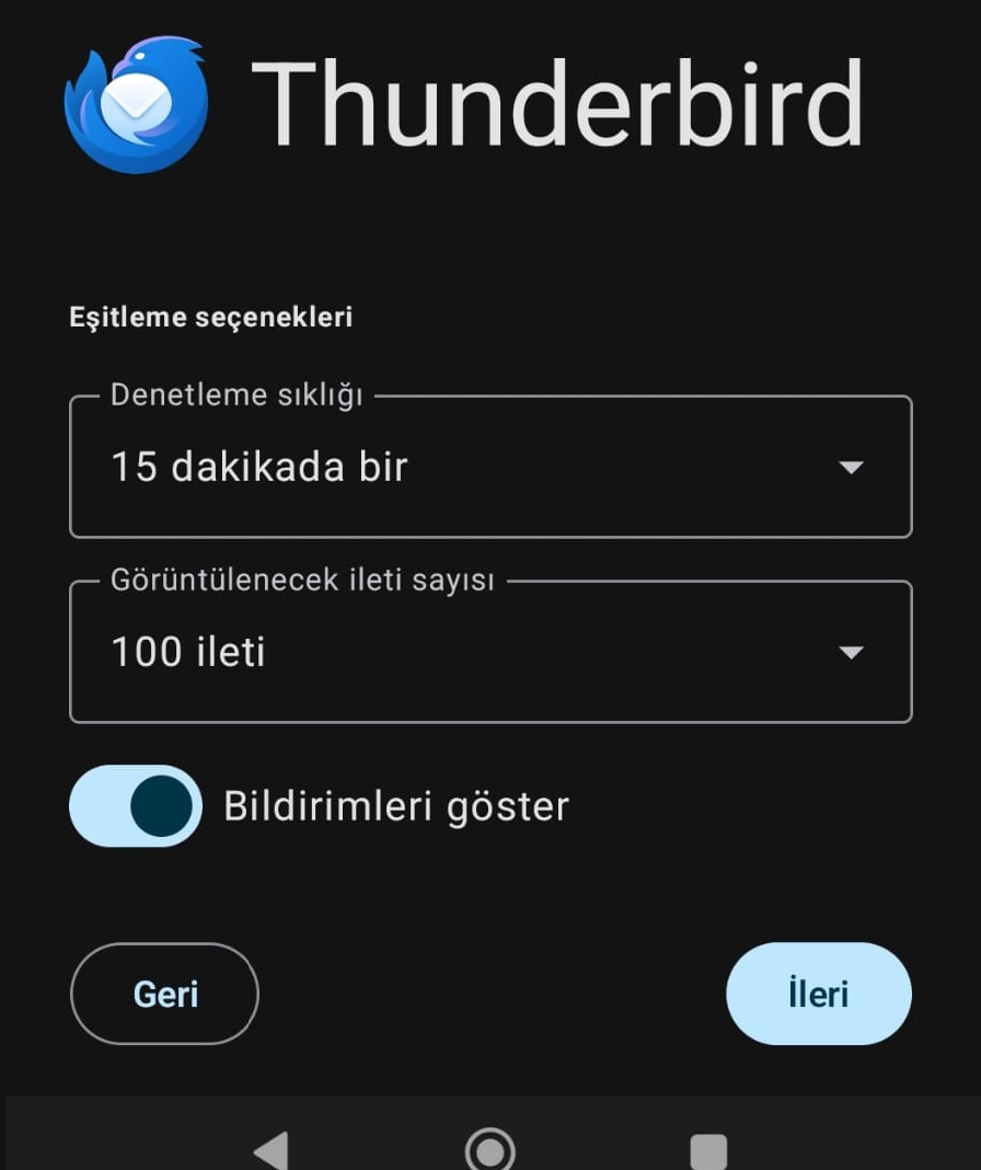 Bu ayarlardan sonra thunderbird android uygulamasını kullanmaya başlayabilirsiniz.
